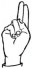 На ћирилици написано КОСТАДИН ЖЕРИЋ састоји се из 13 слова [?]. Исписано ћириличном једноручном азбуком за глувонеме:
